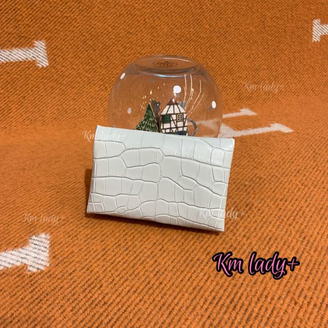 Hermes 銀包 Calvi 鱷魚皮 水晶灰