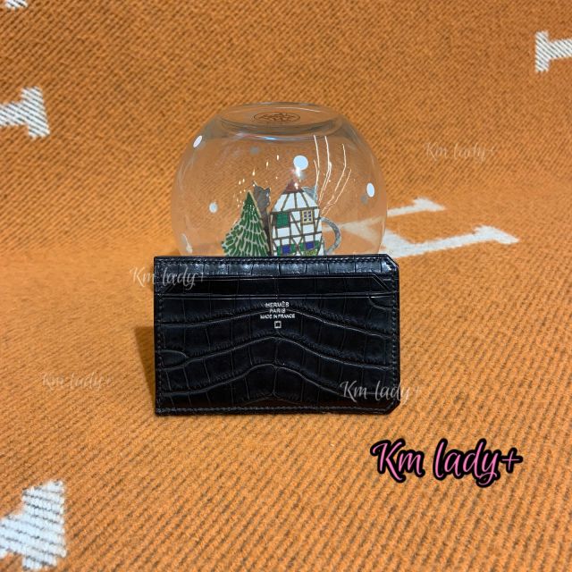 Hermes City 4CC 片卡套 黑鱷魚皮
