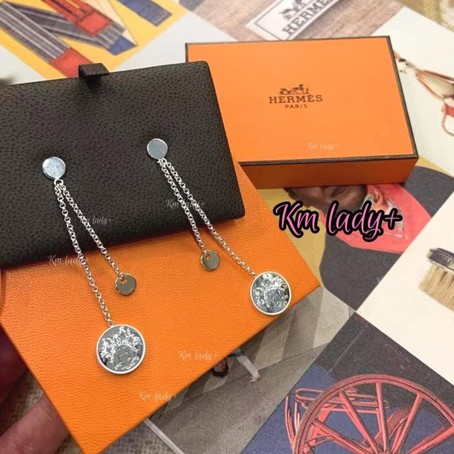 Hermes 吊圓牌耳環925 18k