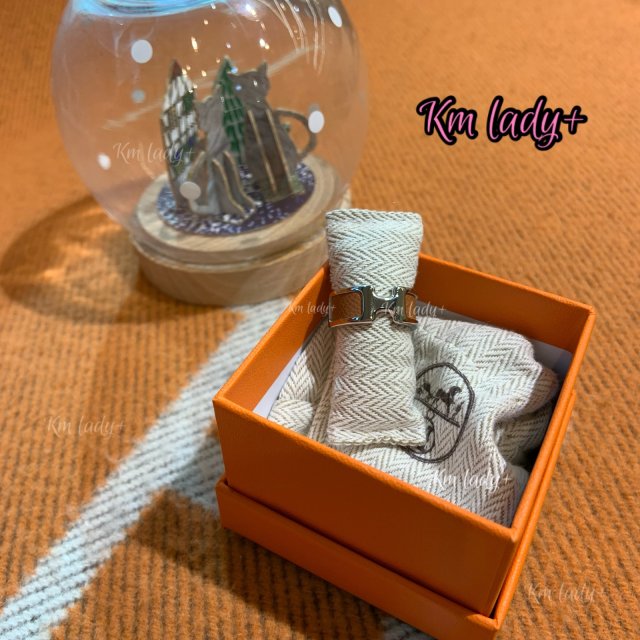 Hermes H戒指 大象灰玫瑰金 粗 S