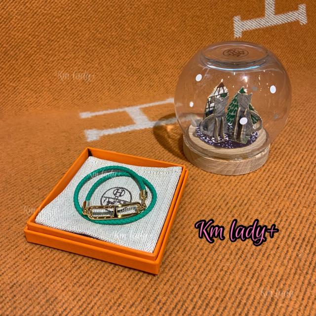 Hermes 豬鼻雙圈手繩 綠金 T2