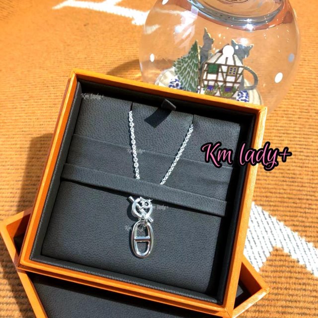 Hermes 白圓牌頸鏈