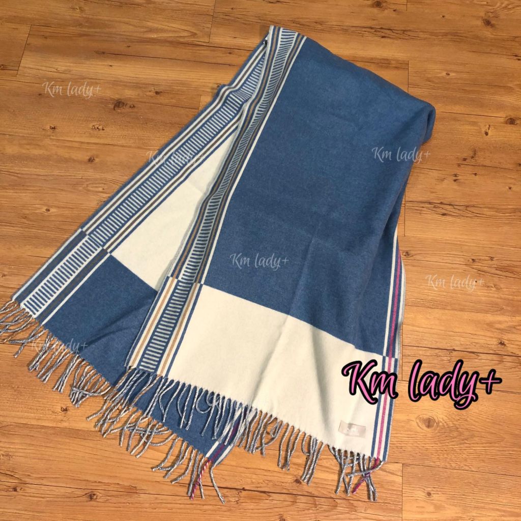 Hermes scarf 頸巾 藍拼白側直間