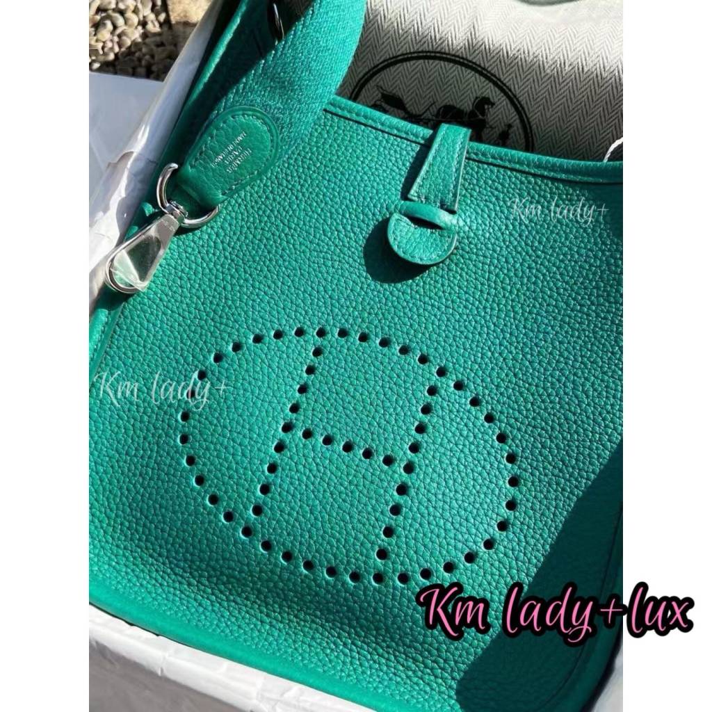 Hermes mini EvelynU4 Vert Vertigo絲絨綠銀扣